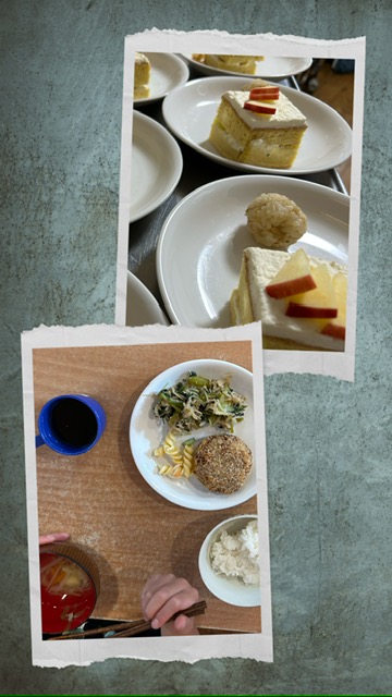 盛り付けも自分でしてるから、どんなのかなぁと見学に行ったら、とても上手でした!好き嫌いせずバランス良く盛り付けてありました。